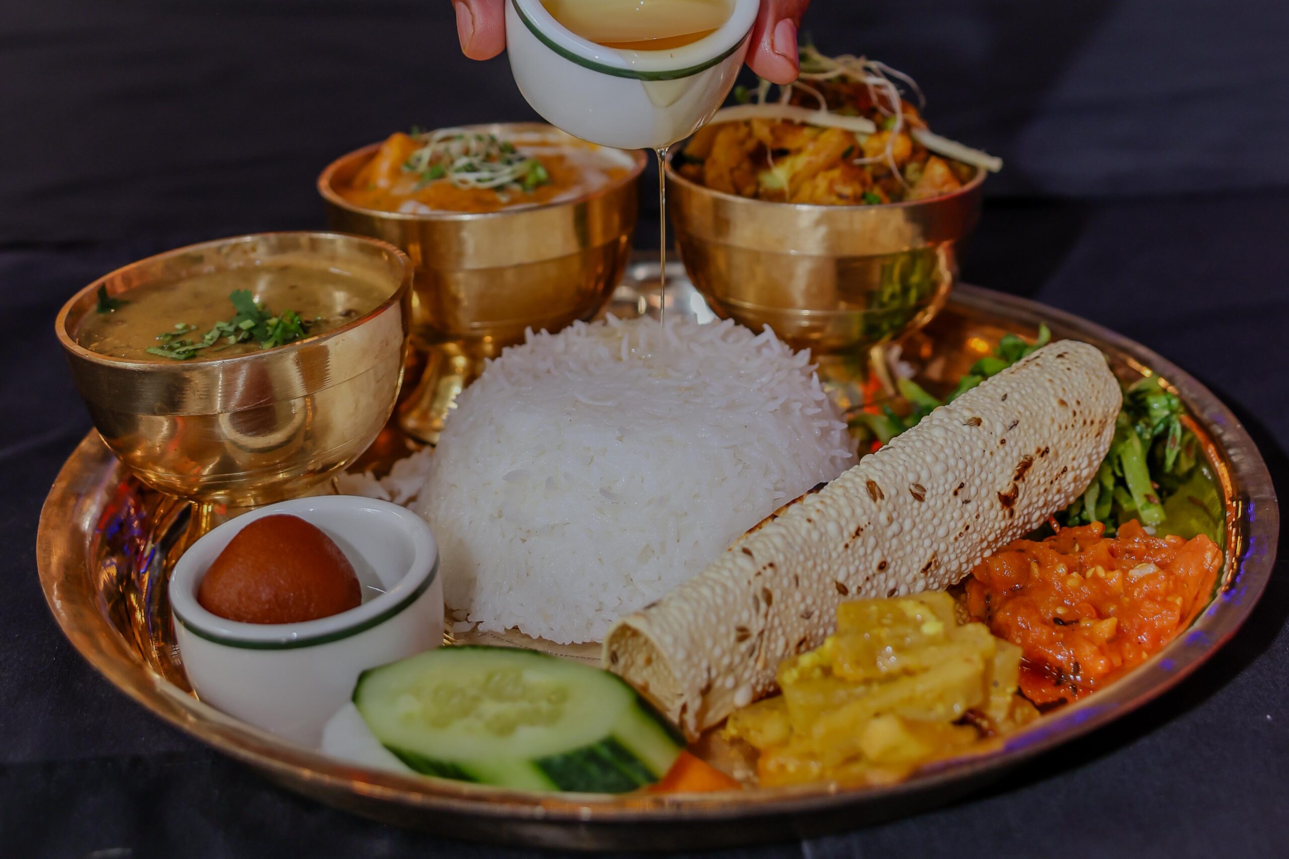 Serve with Cauliflower/Saag/mas ko Dal/mulako achar/tomatoes chutney/salad/papadum/yogurt with lalmon/ghee